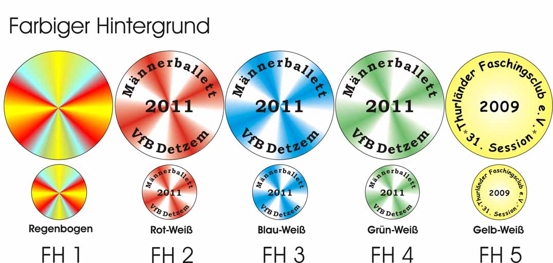 Eigene Herstellung von Farbemblemen, rund, in den Durchmessern: 20 mm, 22 mm, 25 mm, 28 mm,